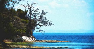 Gemälde Palmen Meer Schiffe Pearl-Islands Panama